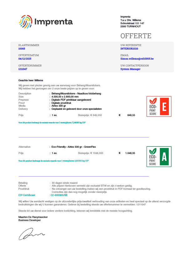 - De CO2-uitstoot wordt vermeld op elk document, eventueel met een EcoPrint Score.
