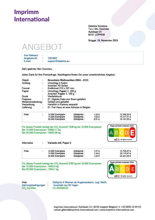 - Die CO2-Emissionen werden in jedem Dokument aufgeführt, optional mit einem EcoPrint Score.