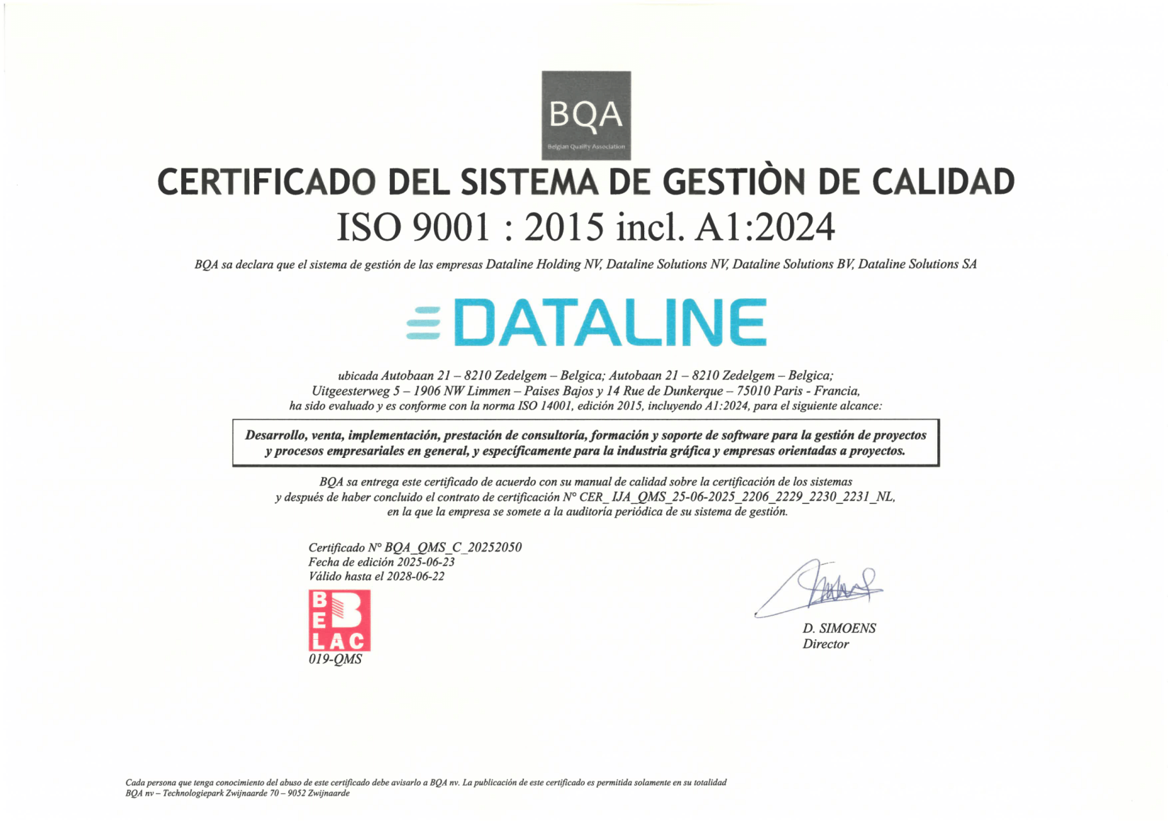 Dataline cuenta con la certificación ISO desde hace más de 15 años. Hemos renovado nuestra certificación año tras año gracias a nuestro compromiso constante con la excelencia en la calidad.