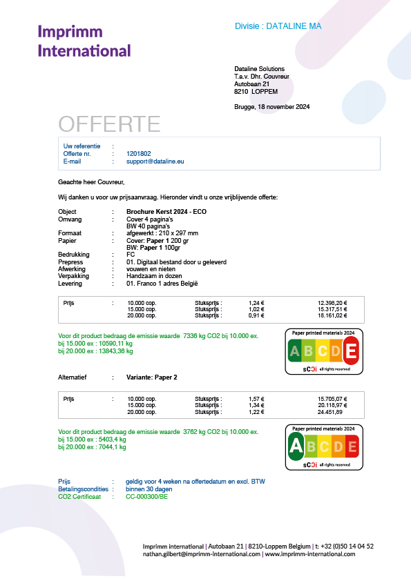- De CO2-uitstoot wordt vermeld op elk document, eventueel met een EcoPrint Score.